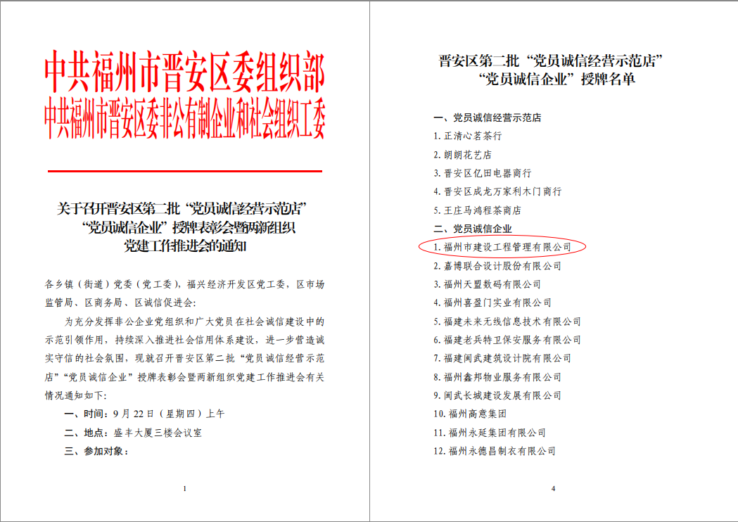 9月22日上午,晉安區(qū)委組織部等部門聯(lián)合舉辦晉安區(qū)第二批“黨員誠信示范店”“黨員誠信企業(yè)”授牌表彰會,我司榮獲“黨員誠信企業(yè)”榮譽稱號。這個稱號是對我司長期以來誠信經(jīng)營的肯定,也是對我們今后堅持誠信合法經(jīng)營的一種鞭策。